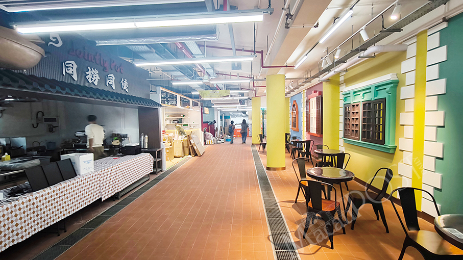 This photo taken yesterday shows a dining area and stalls still under decoration or preparations for business on the market’s first floor.