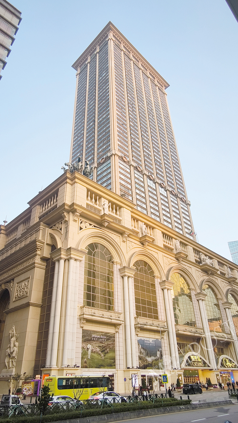 Vehicles travel past L’Arc Hotel in Nape on Saturday where Le Royal Arc Casino is housed on some of its podium floors. – Photo: Tony Wong