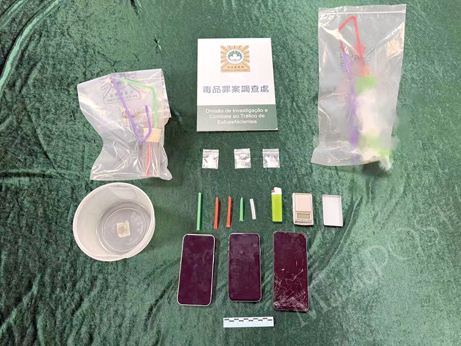 Based on a tipoff, Cheong said, PJ officers investigated and carried out an operation in the city centre on Tuesday evening. PJ officers first intercepted Trinidad and seized a small quantity of methamphetamine (commonly known as meth), a quantity of drug paraphernalia, and suspected drug proceeds of 2,700 patacas, Cheong said.