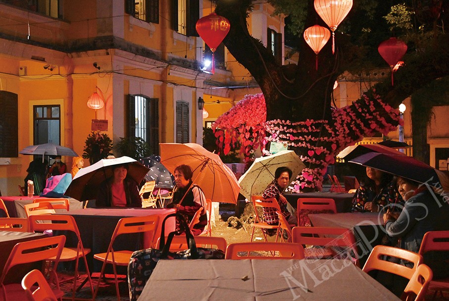 Yesterday evening’s annual one-night event was presented by CAC – Círculo dos Amigos da Cultura de Macau (“Circle of the Friends of Macau’s Culture”) and Albergue SCM. Celebrating the Lantern Festival, which falls on the 15th day of the first month in the lunisolar Chinese calendar and marks the final day of the Chinese New Year celebrations, the event saw a slow trickle of participants arriving, some armed with umbrellas.