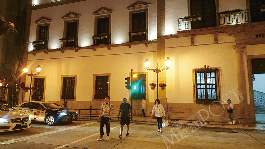 A taxi stops at the traffic light-controlled crossing outside the Municipal Affairs Bureau (IAM) headquarters on Avenida de Almeida Ribeiro on yesterday. – Photo: Tony Wong