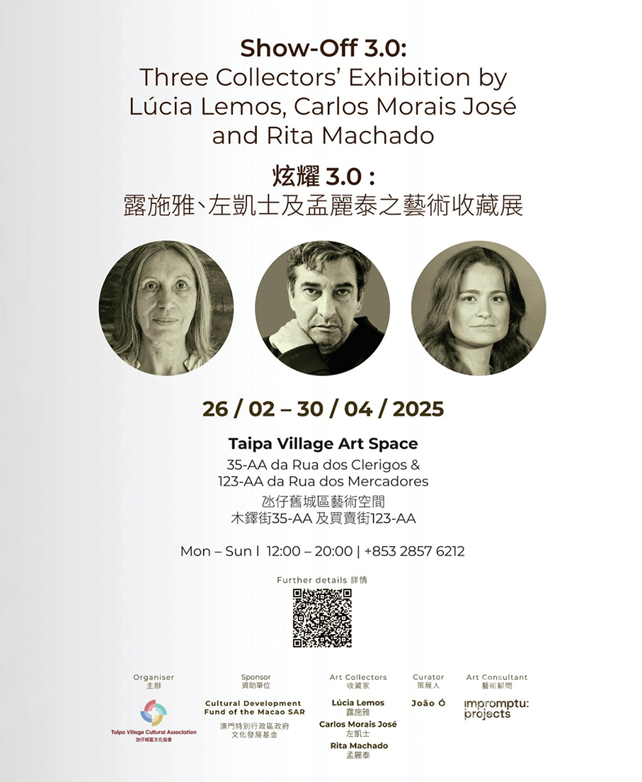 Show-Off 3.0: Three Collectors’ Exhibition is now on at the Taipa Village Art Space, unveiling a treasure trove of art acquired by three renowned collectors whose backgrounds are a study in diversity: Creative Macau founder Lúcia Lemos, publisher Carlos Morais José and architect Rita Machado.
