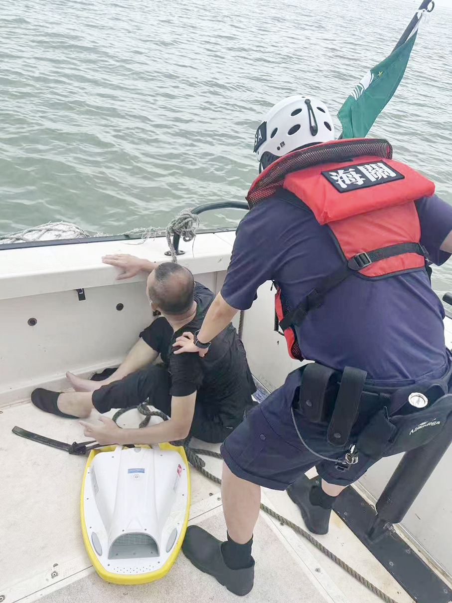 In response to International Workers’ Day, the Macau Customs Service strengthened its maritime and coastal operations to prevent and combat illegal activities. On Thursday, a customs patrol boat in Cheoc Van (竹灣) spotted the man as he was attempting to swim toward the Macau coast using an electronic swimming kickboard. Suspecting illegal immigration activity, the customs officers intercepted him and brought him ashore for further investigation. The customs officers discovered that the man is currently banned from entering Macau.