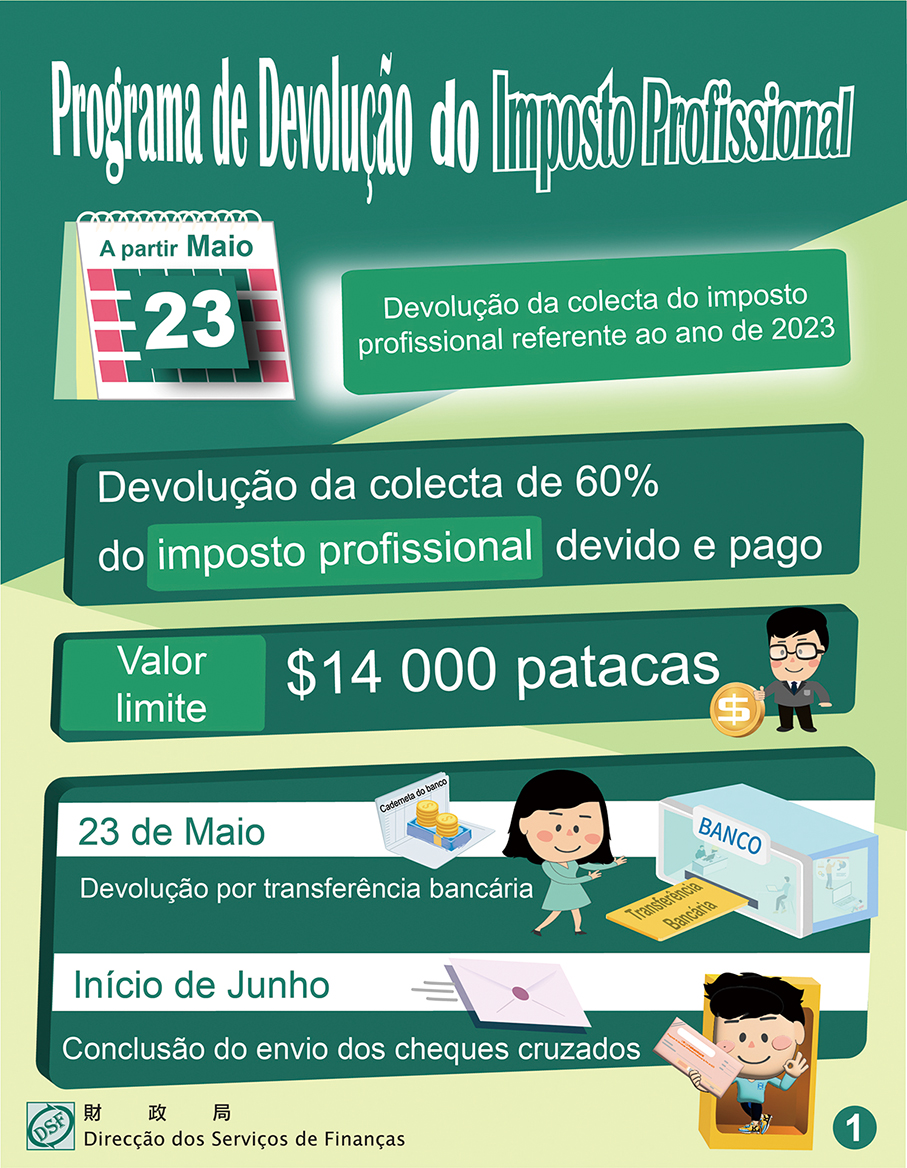 This poster in Portuguese released by the Financial Services Bureau (DSF) yesterday shows key information on the government’s personal income tax rebates.