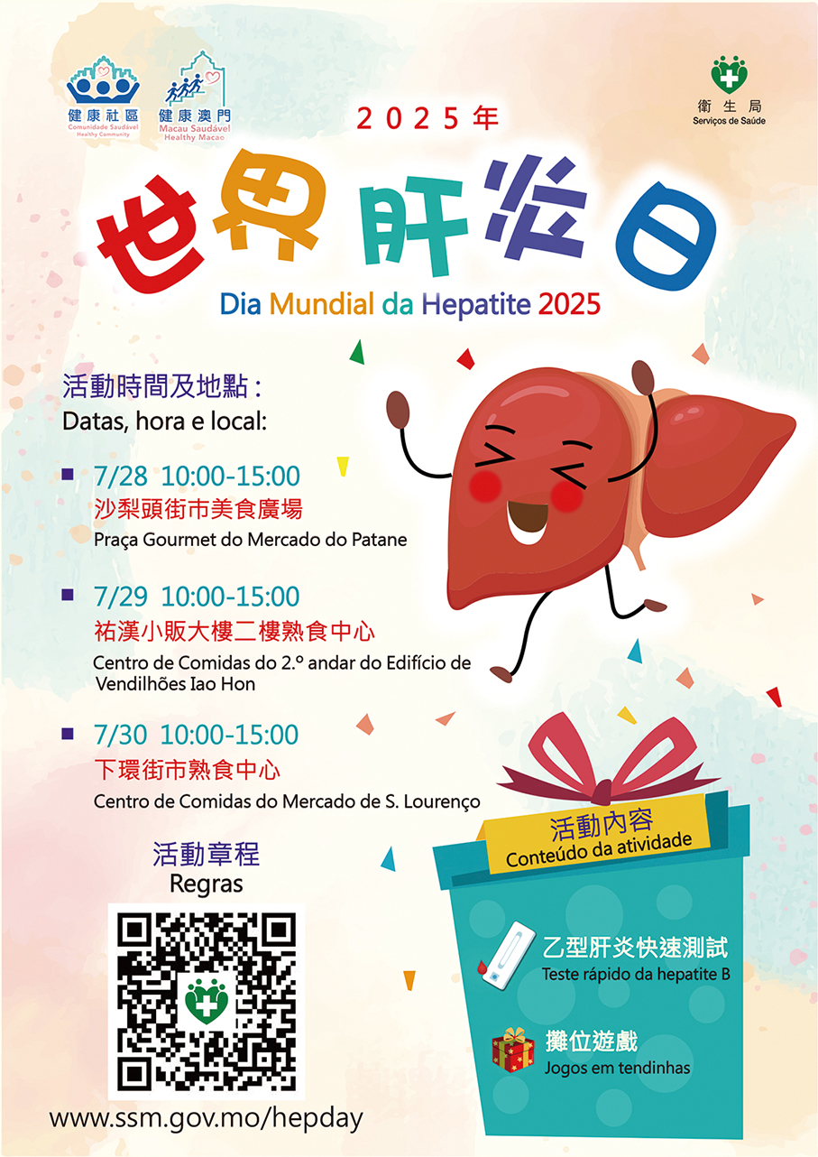 The three-day event, themed “Eliminate Hepatitis Together”, will take place at cooked food centres across three municipal wet markets: the Patane Food Court on Monday, Iao Hon Venders Building on Tuesday, and S. Lourenço Market Food Centre on Wednesday.