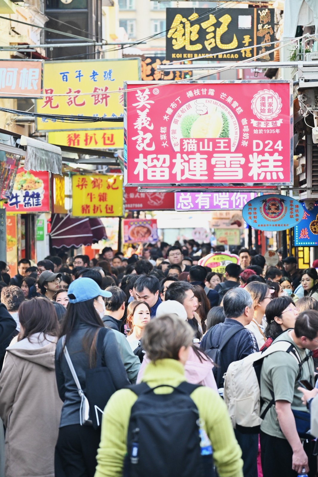 Macau's shopping street Rua do Cunha is packed with visitors last month. - Photo: Rui Pastorin