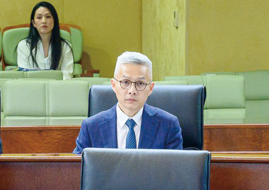 Secretary for Economy and Finance Anton Tai Kin Ip introduced the outline of the bill, which proposes amendments to the city’s overall minimum wage law, during a plenary session of the legislature’s hemicycle yesterday.