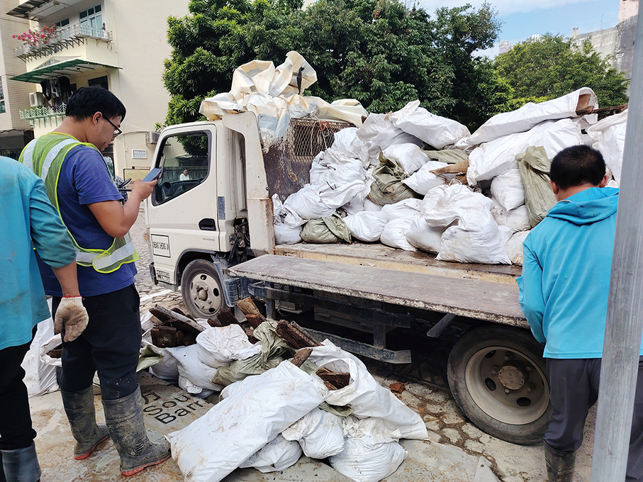 Cleaners load construction waste dredged from the well onto a lorry on Friday. – Photo: Armindo Neves