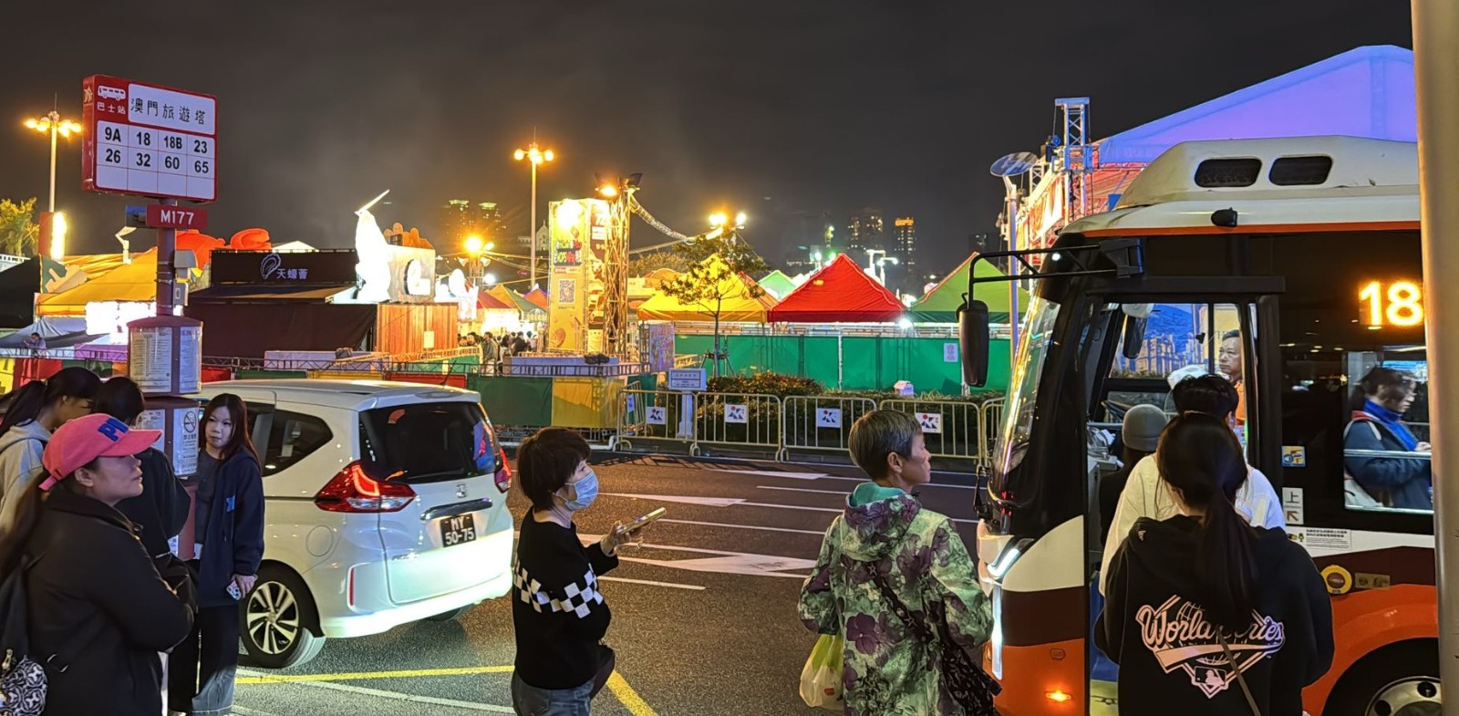 Caption: Local and tourists visit the 25th Macau Food Festival outside Macau Tower in Sai Van ("West Bay") last night. The culinary festival, which opened on November 14, concluded next Sunday. - Photo: Carl Leong