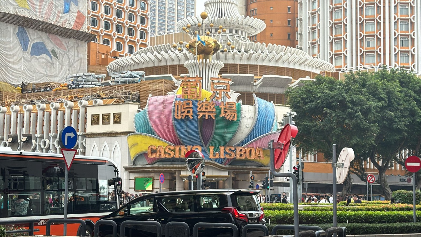Caption: Vehicular and pedestrian traffic moves in front of Casino Lisboa this afternoon. - Photo: Carl Leong