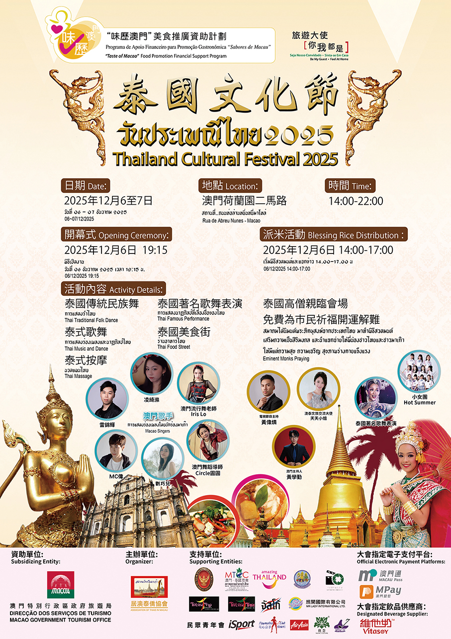 According to the association’s chairman, Chan Dat Ca, the annual activity has become a signature event around the Avenida do Conselheiro Ferreira de Almeida neighbourhood and a key highlight of its December calendar. As the Thai-Chinese community and Macau are now inseparable, under Macau’s multicultural policy, the association has consistently worked to maintain cultural exchanges between the two regions and provide support for Thai-Chinese residents in their daily lives in Macau, Chan said.