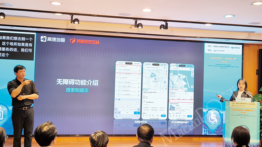 Zhang Man, product manager of AMap, presented details of the map’s accessible navigation for wheelchair users available in Macau during yesterday’s ceremony.