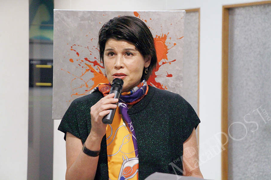 Alice Costa speaks during the opening ceremony of her exhibition at Creative Macau, the Centre for Creative Industries (CCI) in Nape. – Photos: Khalel Vallo