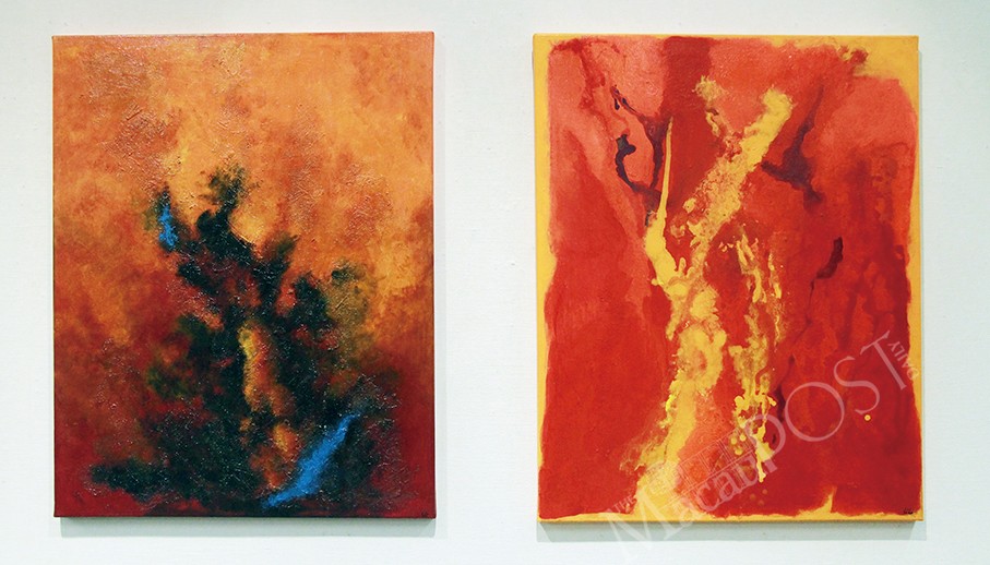 According to a message card distributed by the centre, the exhibition centres on organic shapes and fluid lines, reflecting spontaneity found in natural environments. Through tactile techniques such as impasto*, splattering and layering, the paintings develop textured surfaces that invite both visual and haptic engagement. Rather than depicting recognisable scenes, the works convey movement, energy and emotional resonance, encouraging viewers to respond intuitively, the message pointed out.