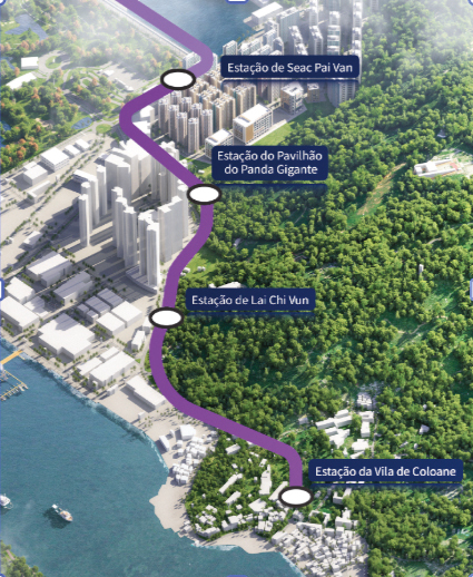 According to the plan, the proposed South Line would run from the HZMB Macau checkpoint to the future ES5 station in the southern area of Zone A (a station of the ongoing LRT East Line project), from where it would run to Nape where two stations would be set up with one near the waterfront Kun Iam statue and the other one near Avenida 24 de Junho, to Nam Van Lake district with a station near Plot A9, to Sai Van district with a station near Macau Tower, before finally arriving in Barra.