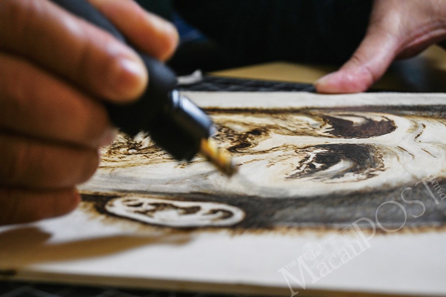His goal is to continue improving and produce more works, while taking on more subjects and themes. He also hopes to hold exhibitions in other galleries in Macau, explore other art forms and even plans to put his original pyrography works on T-shirts. “One step at a time, I am getting there.”