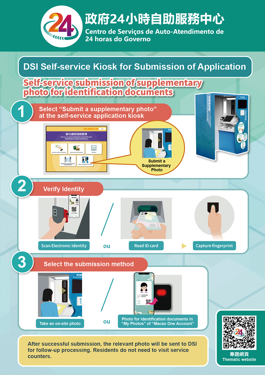This poster provided by the Identification Services Bureau (DSI) yesterday introduces the self-service machine for submitting supplementary photos for identification documents.