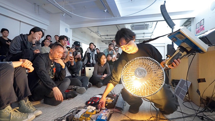 As a programmer and artist, Wada utilises a variety of self-made appliances to create his music. In one mesmerising performance, a stationary scanning device changed the pitch of the sound based on the performer’s distance from it, effectively turning movement into melody. The highlight, however, was when Wada transformed an ordinary electric fan into a guitar-like instrument. Beyond the initial gimmickry, the performance was sonically captivating, a work of contemporary art.
