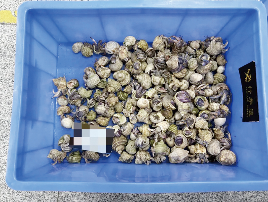 According to the identification results from the Technical Centre of Gongbei Customs, all the live hermit crabs were Coenobita violascens (commonly known as Viola Land Hermit Crab).