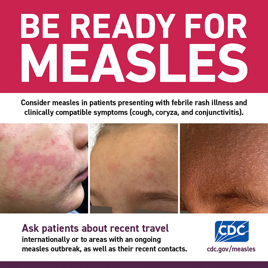 Infected individuals are contagious from four days before to four days after the rash appears. Symptoms include fever –above 38°C, Koplik’s spots* inside the mouth, a generalised maculopapular rash**, conjunctivitis, cough, and runny nose.