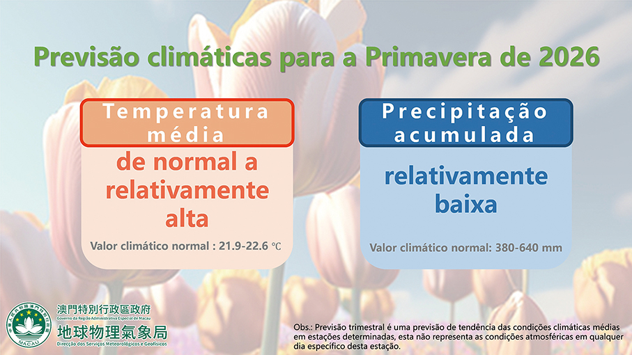 The Meteorological and Geophysical Bureau (SMG) says that Macau’s average temperature this spring, which means during the months of March to May, is forecast to be normal to above-normal, while this spring’s accumulated precipitation is expected to be below-normal.