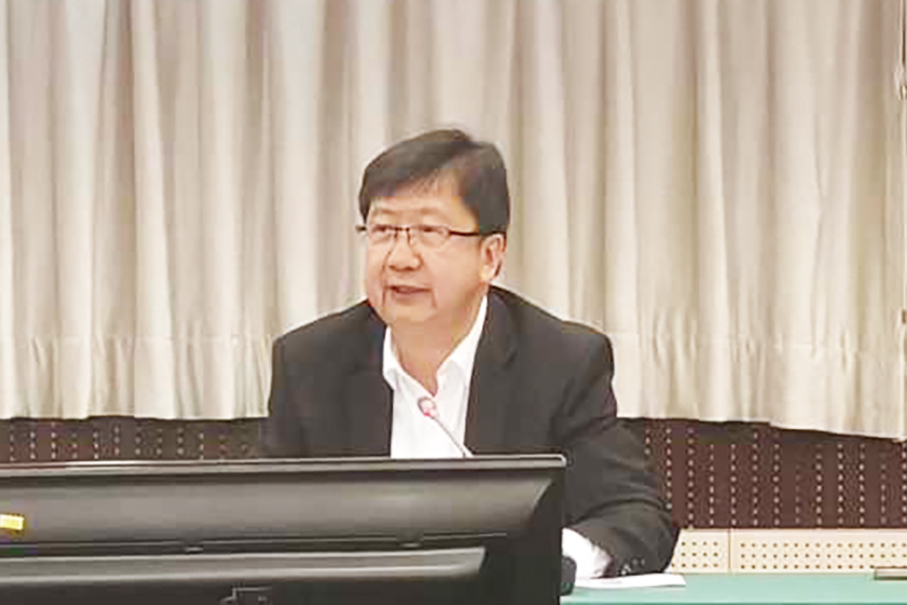 Secretary for Transport and Public Works Raymond Tam Vai Man chairs yesterday’s meeting of the Working Group for Optimising the Coordination of Roadwork Projects. – Photo: DSAT