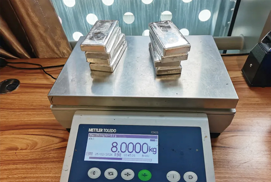 This undated handout photo released by the General Administration of Customs (GACC) on Tuesday shows eight silver ingots seized by Zhuhai’s Gongbei Customs at the Qingmao checkpoint last Wednesday.