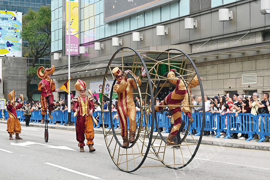 The theme song for the Macao International Parade could again be heard at various points in Macau’s city centre as the 2026 edition took place yesterday afternoon, with troupes adding a rainbow to Macau’s overcast streets as they marched, danced and performed their way to Praça do Lago Sai Van.