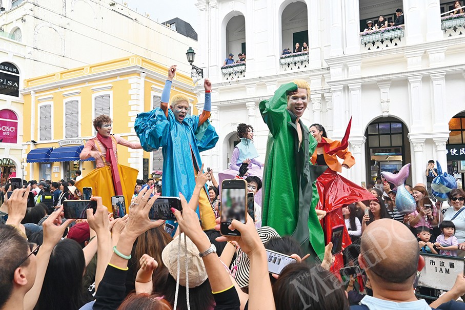 Each group walked down the steps of the UNESCO World Heritage-listed site towards a route that covered areas including Largo do Senado, Rua da Sé (大堂前地), and Avenida Panorâmica do Lago Nam Van (南灣湖景大馬路), all the while catching the attention of curious crowds of all ages, many waiting to snap a photo or take a video and have a chance at interacting.
