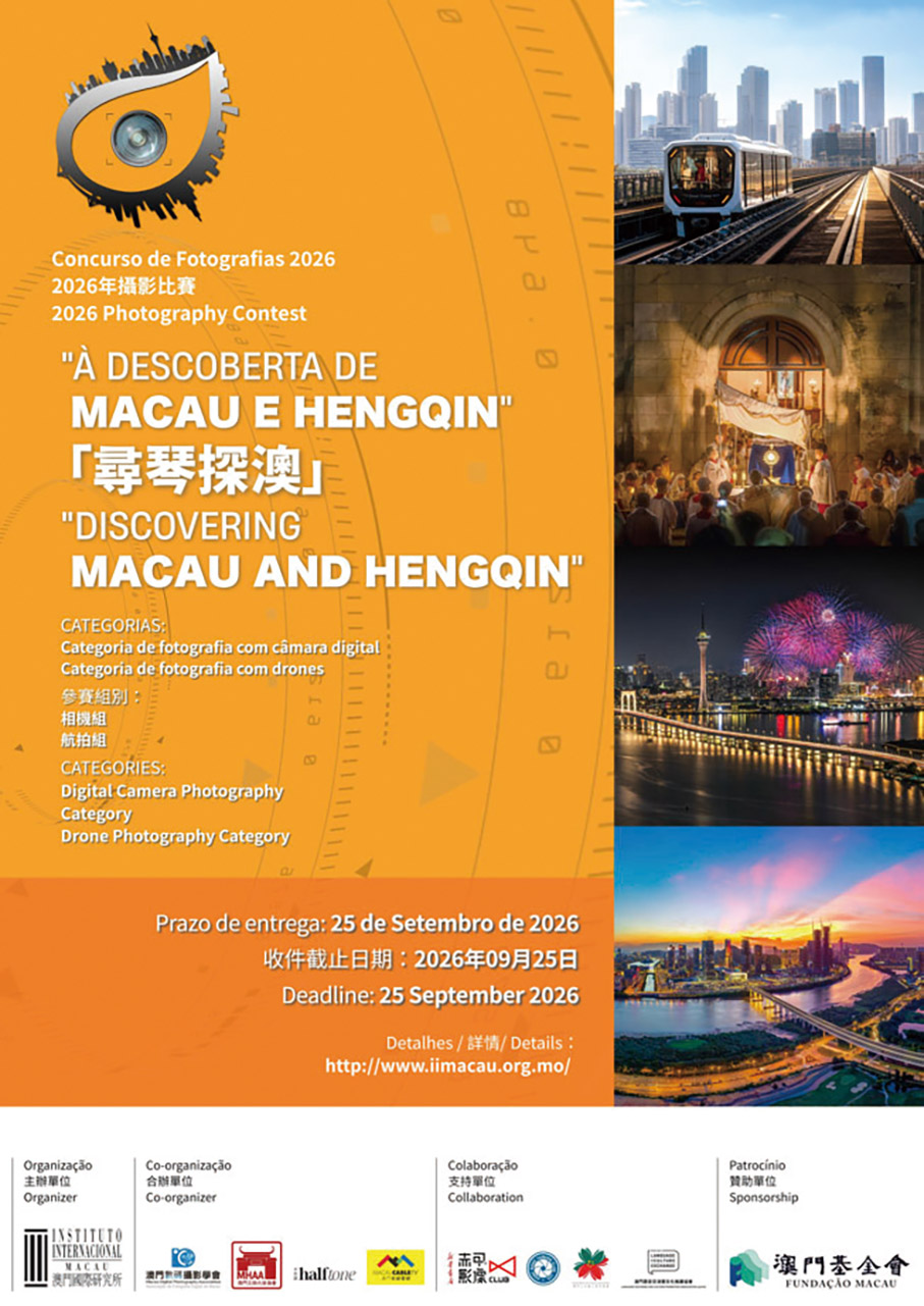 This poster provided by the International Institute of Macau (IIM) promotes its 2026 Photography Contest titled “Discovering Macau and Hengqin”.