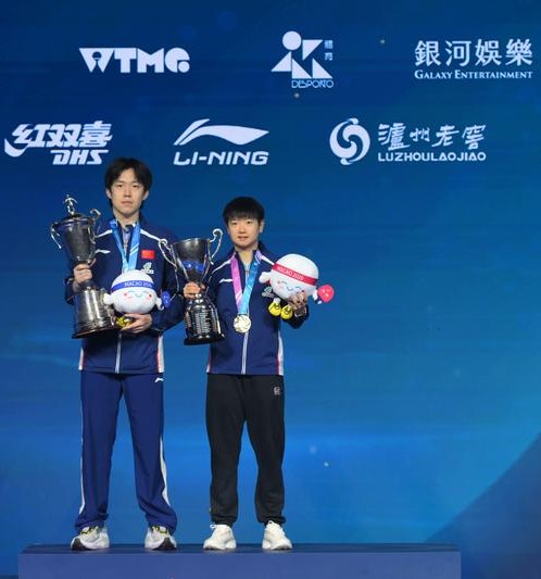 Caption: China's Wang Chuqin (left) and Sun Yingsha pose during the award ceremony after winning the men's and women's championships at the ITTF Men's and Women's World Cup 2026 in Macao on Easter Sunday. Photo: Xinhua/Cheong Kam Ka