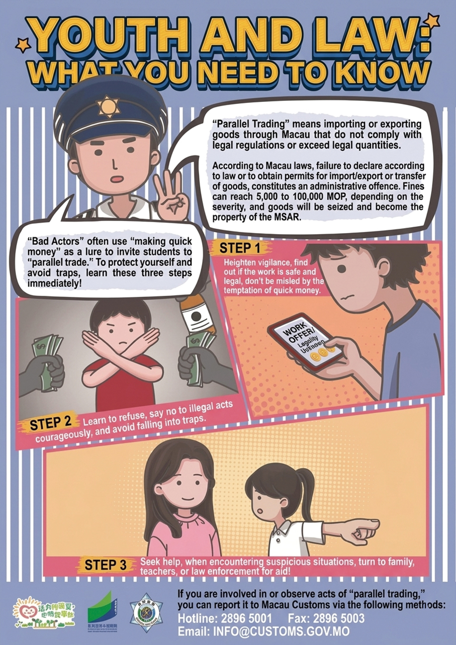 The Macau Customs Service and the Education and Youth Development Bureau (DSEDJ) announced in a joint statement on Easter Monday that they are setting up an early warning mechanism to prevent youngsters from engaging in in parallel trading.