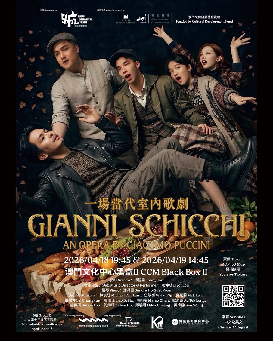 Performances are scheduled for this weekend, April 18 starting at 7:45 p.m. and April 19 commencing at 2:45 p.m., at the Macao Cultural Centre Black Box II. It will be performed in Italian, its original language, with English and Chinese subtitles. Tickets are priced at 180 patacas, with various discounts available. For purchases, please visit: https://forms.gle/5FieiefpxJbEK6qY7.