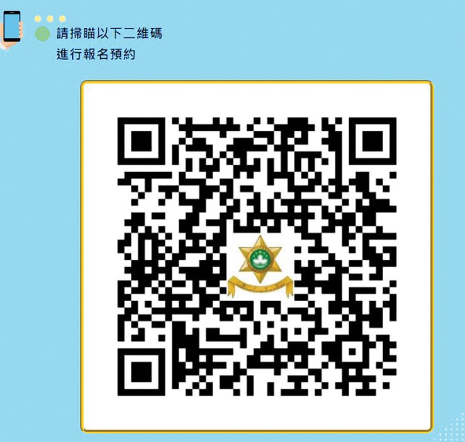 This QR code provided by the Public Security Police (PSP) yesterday allows residents to sign up to participate in the Barrier Border checkpoint’s iris recognition system test.