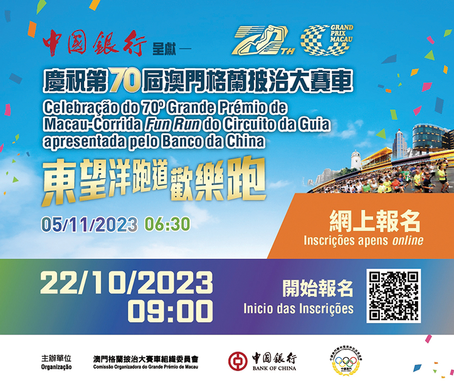 The Sports Bureau (ID) and the Macau Grand Prix Organising Committee (MGPOC) announced yesterday that a running event around the Guia circuit will be held on November 5, starting at 6:30 a.m., in the runup to this year’s Macau Grand Prix, and anyone aged over 15 is welcome to participate.