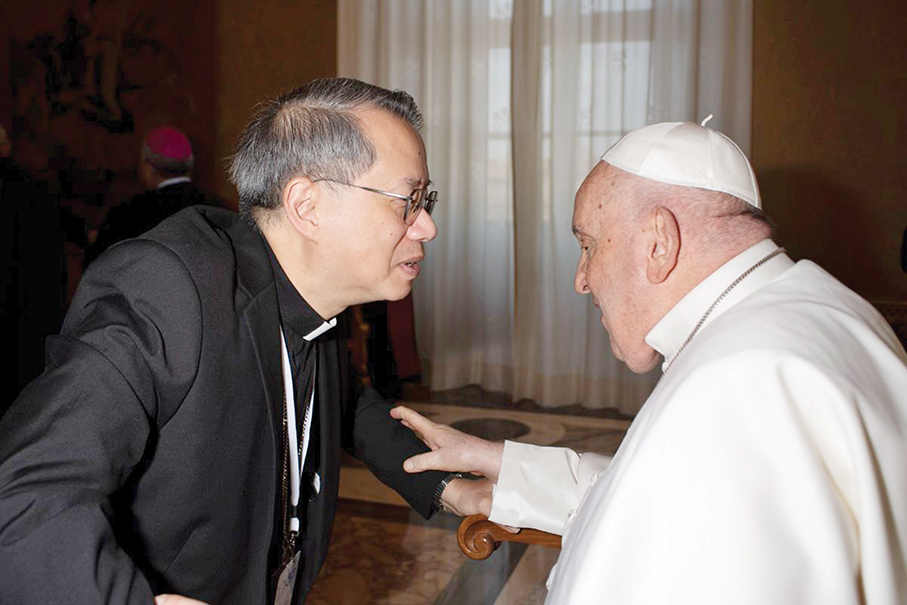 University of Saint Joseph (USJ) Chancellor-cum- Macau Bishop Stephen Lee Bun-sang and its rector, Prof. Stephen Morgan, met with Pope Francis in Rome on January 19, the local Catholic tertiary education institution announced in a statement on Friday.