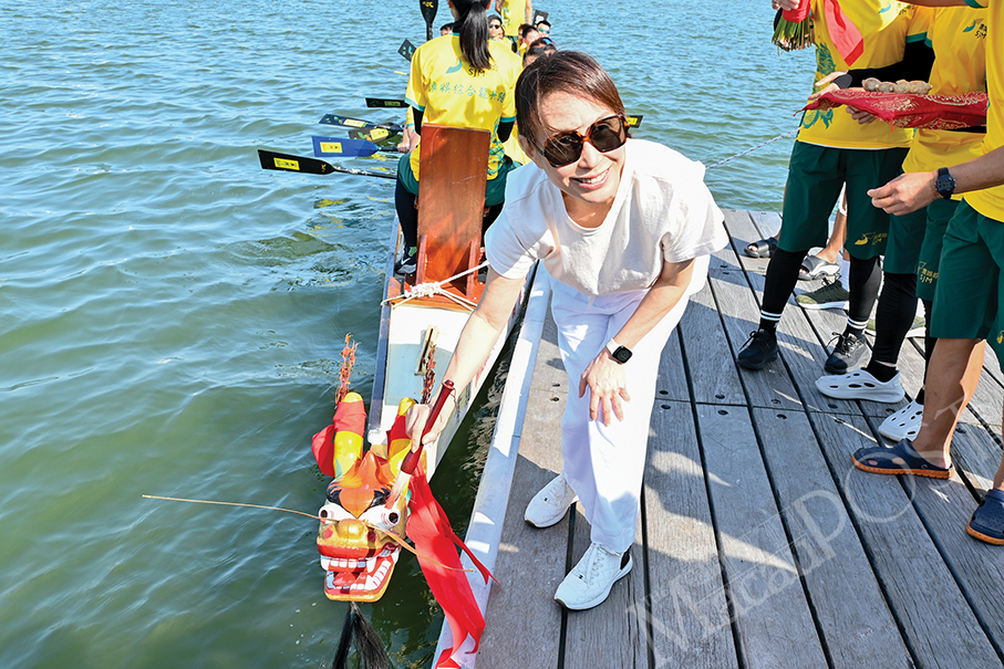 SJM Managing Director Daisy Ho Chiu Fung poses during yesterday’s Dragon Boat Launching Ceremony at the Nam Van Lake Nautical Centre. – Photos: Rui Pastorin