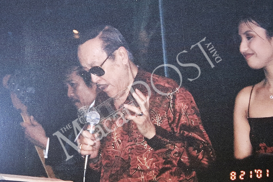 In this photo taken in 2001 and recently provided by the Ip family, Willy Yip, who loved singing, sings at the Conrad Hotel lobby lounge in Hong Kong.