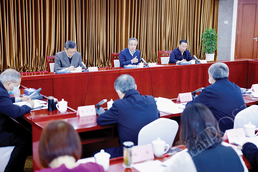 Vice Premier Hu Chunhua, also a member of the Political Bureau of the Communist Party of China Central Committee, holds a meeting with the State Council Leading Group Office of Poverty Alleviation and Development in Beijing yesterday.