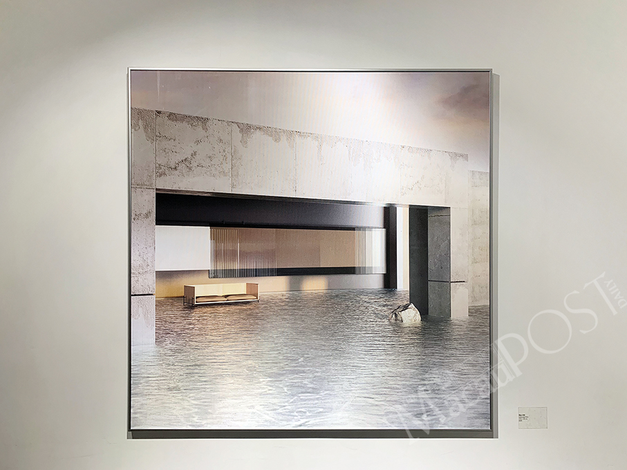 The paintings or images, by using grating technology that highlights visual tension and the sense of space, convey the shapes of water. Paintings deviating from the static position create an extending tension, producing internal dynamics between art and Nature, “hence cohesion in the 2D interior of the exhibition venue”, according to Wong’s statement.