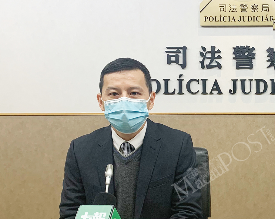 Judiciary Police (PJ) spokesman Chan Wun Man poses during a regular press conference at the PJ headquarters on Wednesday.