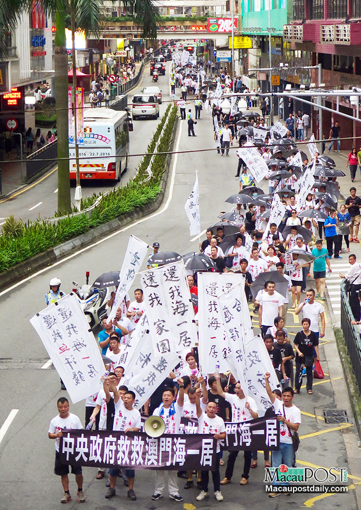 Hundreds of pre-sale buyers of Pearl Horizon flats staged a protest march yesterday from Areia Preta district to the Central People’s Government Liaison Office in Zape, urging the office to press the local government and the ill-fated residential project’s developer Polytex to hold “three-party talks” with them.