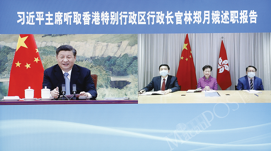 BEIJING – President Xi Jinping yesterday heard a work report delivered via video link by Chief Executive of the Hong Kong Special Administrative Region (HKSAR) Carrie Lam on the HKSAR government’s work in 2020, its COVID-19 response and other situations.