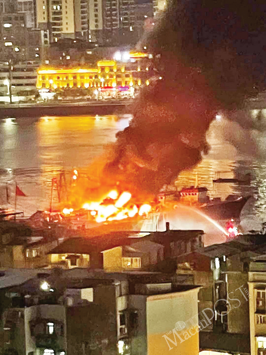 A DSAMA statement last night said that the Macau Customs Service noticed at around 6:30 p.m. that a fishing boat anchored outside the Patane Market Municipal Complex was on fire. A number of Macau Customs Service vessels rushed to the scene within a few minutes to begin fighting the fire, during which the blaze became so fierce that it then spread to two other fishing boats anchored nearby, the DSAMA statement said.