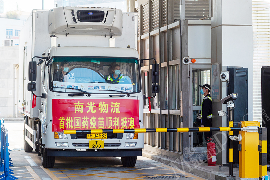 The Sinopharm vaccines arrived in Macau by freezer lorry after a 30-hour drive from Beijing. The vaccines were delivered by Nam Kwong Logistics.