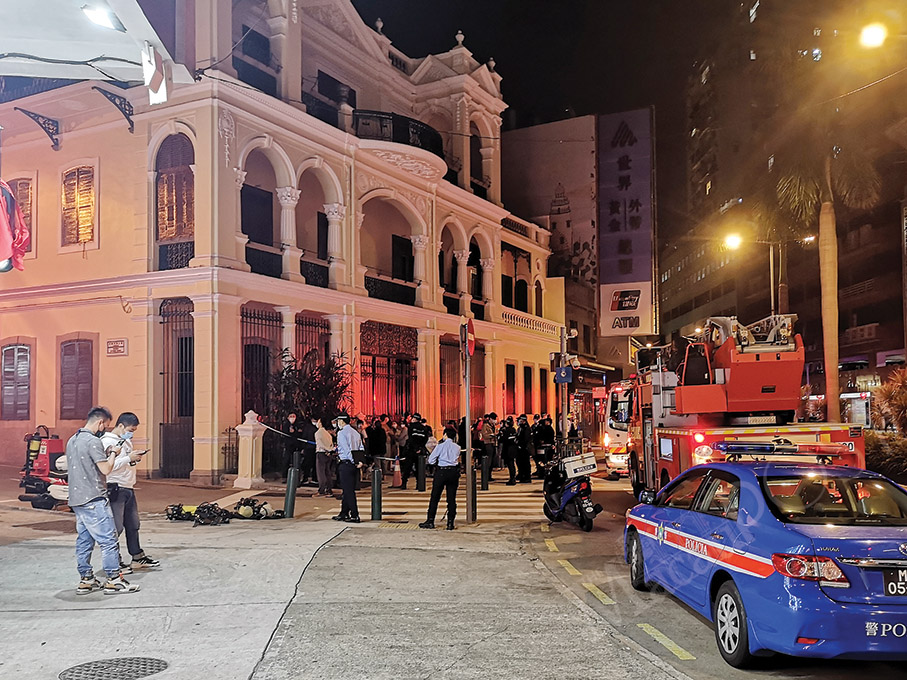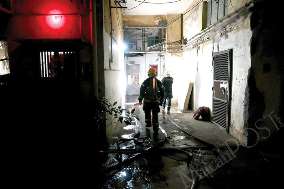 The fire broke out at around 8 p.m. in the flat on the second floor of Tong Heng San Chun Building in Travessa do Padre Soares, the narrow alley running from near the Consulate General of Portugal in Rua de Pedro Nolasco da Silva to close to the McDonald’s outlet in Rua do Campo.