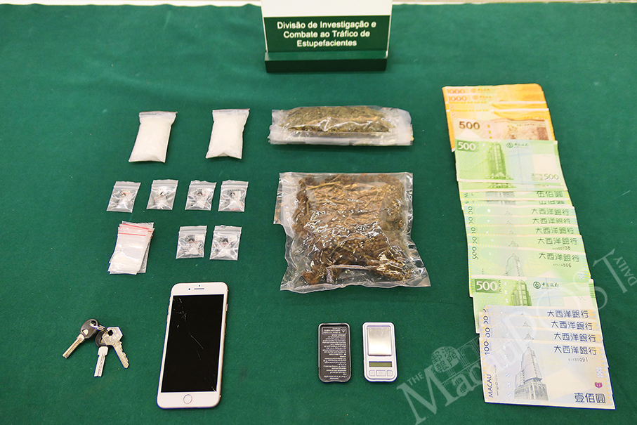 Choi said the Judiciary Police later searched Phung’s home and seized 170 grammes of cannabis; 103 grammes of ice, as well as drug packaging tools and 10,000 patacas of suspected drug money.