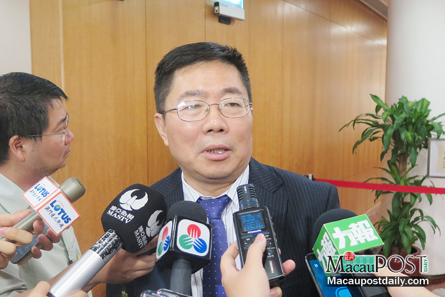 Legal Affairs Bureau (DSAJ) Liu Dexue speaks to reporters after a meeting with members of the legislature’s 1st Standing Committee yesterday. Photo: Davis Ip