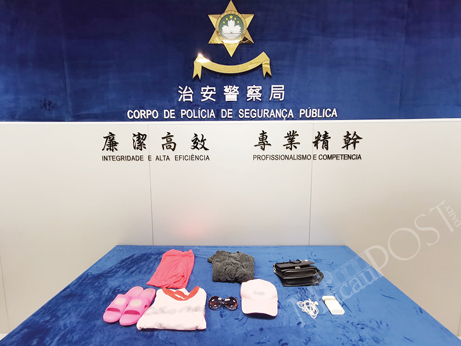 This undated handout photo provided by the Public Security Police (PSP) yesterday shows the stolen handbag and the clothes which the suspect wore when stealing the handbag.