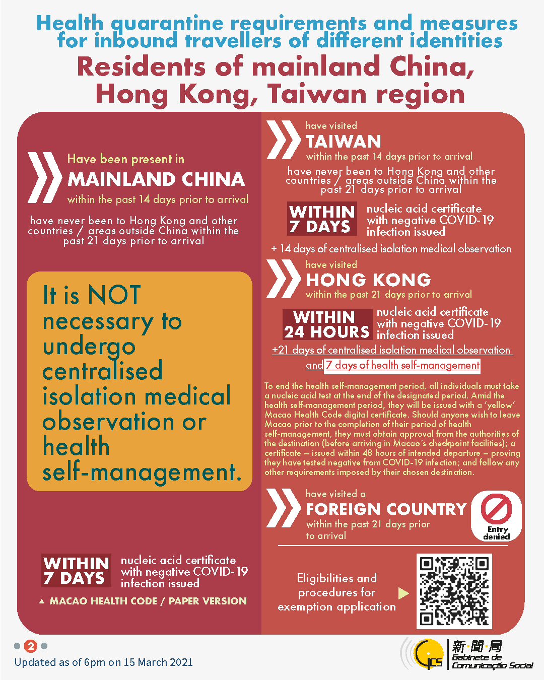 Health quarantine requirements and measures for inbound travellers of different identities